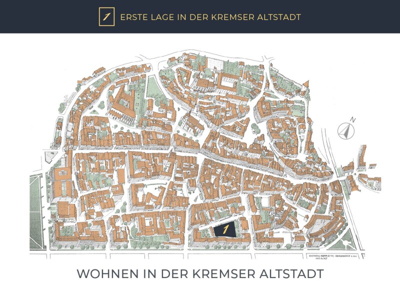 Krems, Altstadt, Neubau, Erstbezug: 3 Zimmer, 73 m² Wfl., 24 m² Außenbereiche, H8/T4