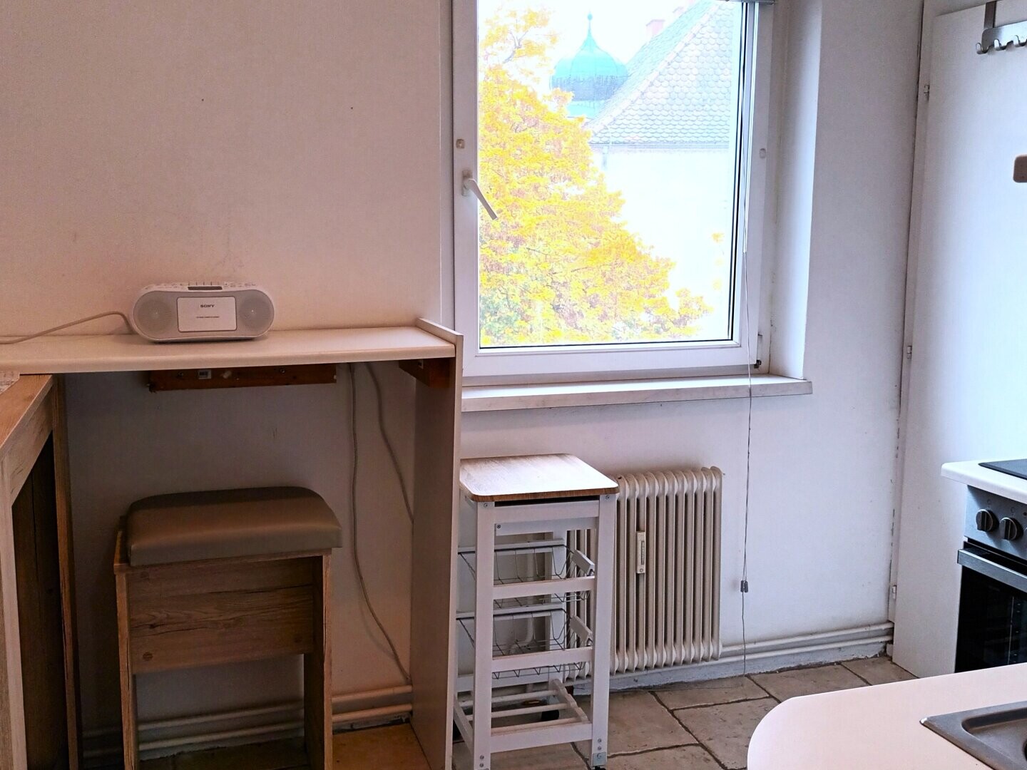 Vorraum, WC, Küche möbliert mit Einbaugeräten inkl. Kühl-, Gefrierkombi und eine raumsparende Sitzgelegenheit runden das Küchenambiente ab.