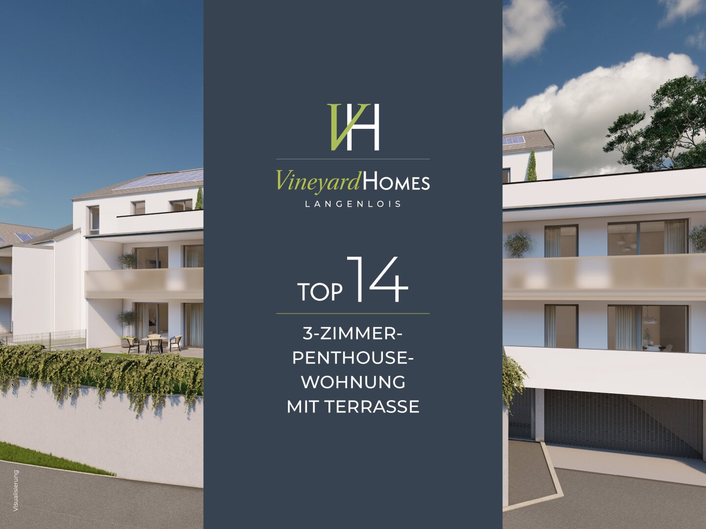 Mit dem Wohnprojekt VineyardHOMES entsteht am Rand der traditionsreichen Weinstadt Langenlois ein hochwertiges Zuhause für Menschen, die Lebensqualität, moderne Architektur und naturnahes Wohnen verbinden möchten. Die Wohnanlage umfasst 14 Wohnungen sowie 3 Reihenhäuser mit großzügigen Außenflächen wie Terrassen, Balkonen oder Eigengärten. Die klar gestaltete Architektur mit traditioneller Dachform fügt sich harmonisch in die Umgebung ein und verbindet zeitgemäßes Design mit hoher Alltagstauglichkeit.