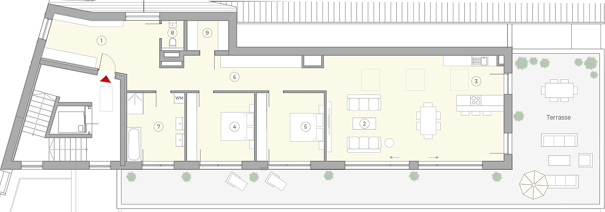 Hinweise zu den Wohnungsplänen: Die Einrichtungsvorschläge (Innenräume, Terrassen, Balkone, Gärten) sind nicht Bestandteil der Bau- und Ausstattungsbeschreibung. Weitere Hinweise sowie hochauflösende Wohnungspläne finden Sie im “Exposé VineyardHOMES Langenlois".